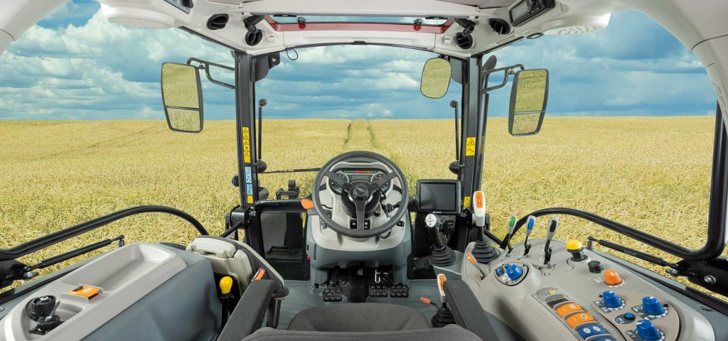 Para ofrecer una visibilidad panorámica y con equipamiento de automoción para el mejor confort de trabajo. Cada mando está dispuesto de forma ergonómica, como el nuevo joystick, que permite una fácil y rápida gestión de funciones y aperos, como Hi-Lo, H-M-L y la pala cargadora delantera. El techo bajo permite entrar fácilmente a zonas como establos y su escotilla transparente facilita el trabajo con la pala.